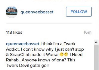 The model claims to be addicted to twerking and could be in need of a rehabilitation programme.