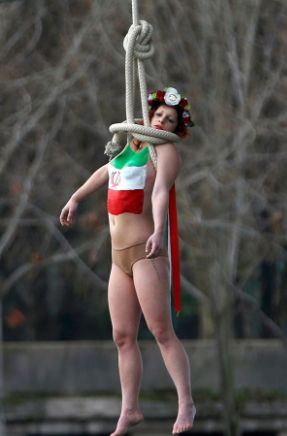 "We organised this public display as a little reminder of the fact that every year, more than 800 people are sentenced to death in his country," Femen France's spokesperson Sarah Constantin explained.
