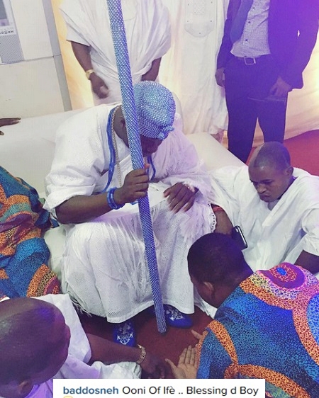 Nigerian hip hop star, Olamide Adedeji, known by his stage name as Olamide, has been spotted prostrating to get blessings from the newly crowned Ooni of Ife, Oba Adeyeye Ogunwusi as he paid homage to the traditional ruler.